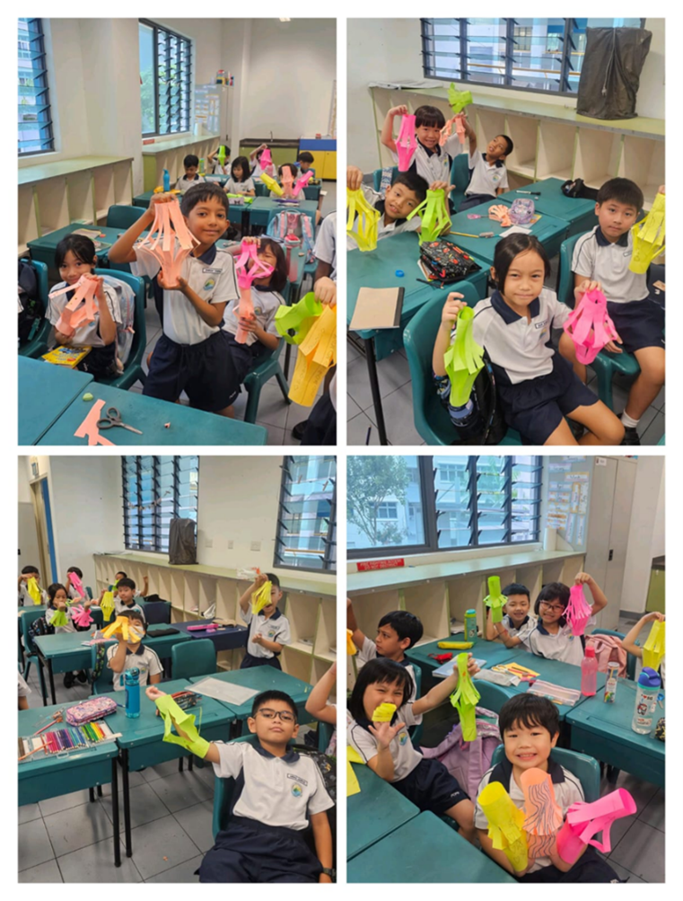 The Primary 1 students made their own paper lanterns during the unit ‘Mid-Autumn Festival’.