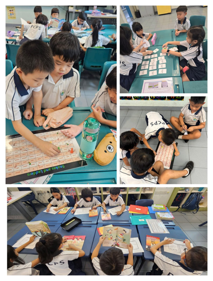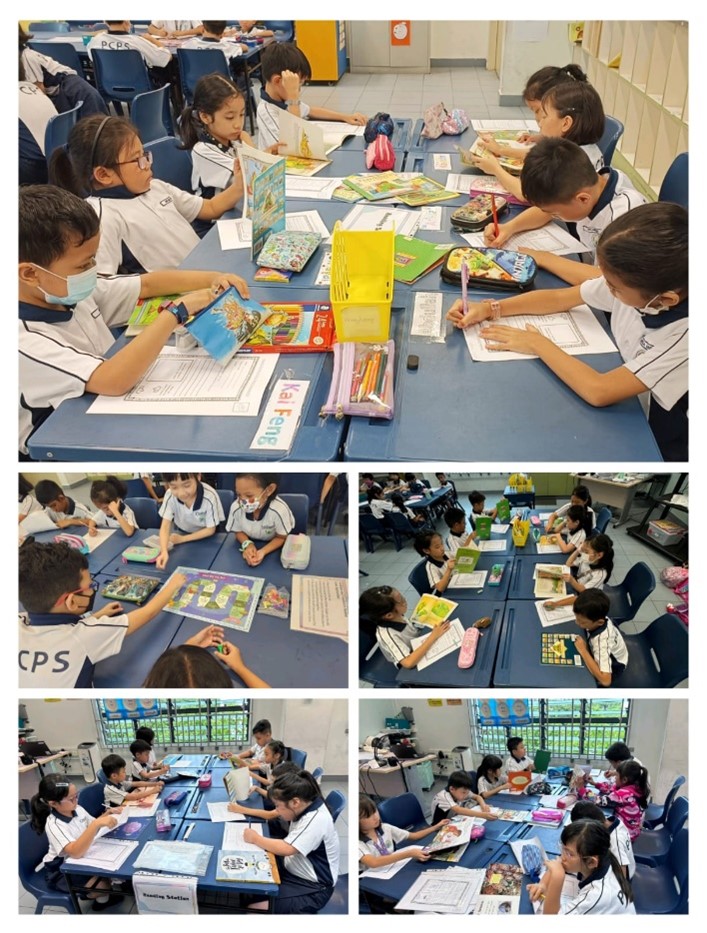 The Primary 1 and Primary 2 students engaged in a variety of literacy station activities.